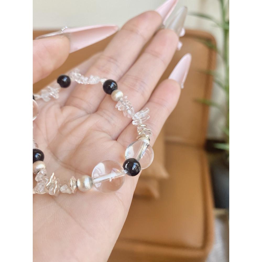 Be the first to review “Frosted Clarity Clear Quartz & Black Bead Stretch Bracelet”