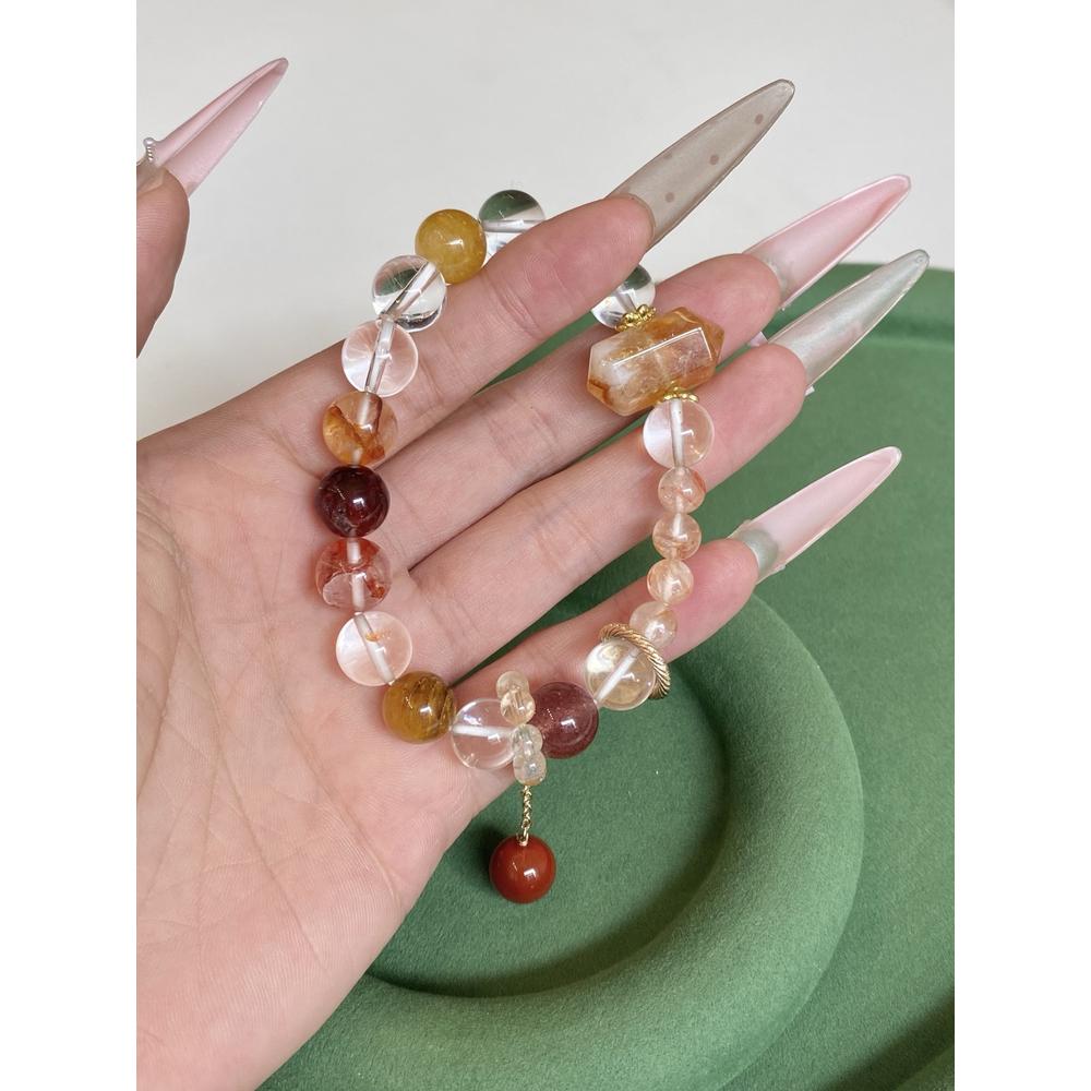 Crafted with an assortment of natural crystal minerals — including clear rock crystal, soft rose quartz, smoky quartz, and other vibrant gemstones — each bead in the Aether Glow Bracelet carries the essence of nature’s artistry. The delicate interplay of hues mirrors the ever – changing light of dawn and dusk, echoing the profound bond between humanity and the earth. As you wear it, let these beads be a gentle reminder: draw strength from nature’s embrace, awaken your inner vitality, and step into a renewed self filled with clarity and hope, just as the first light of Eosia ushers in a fresh start.