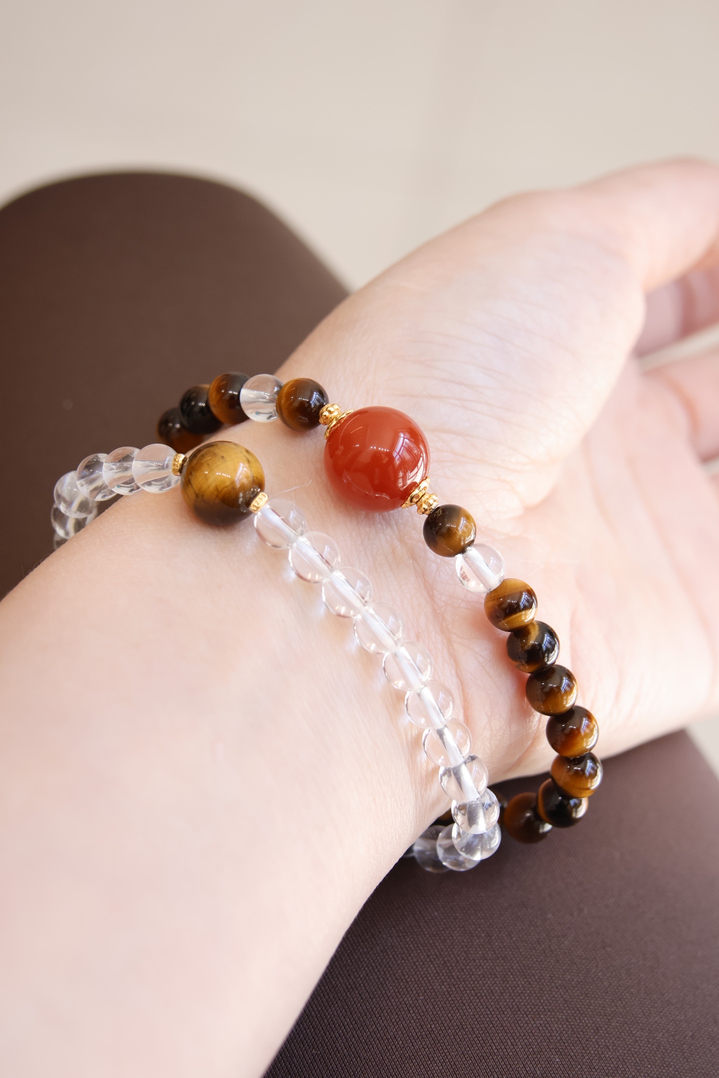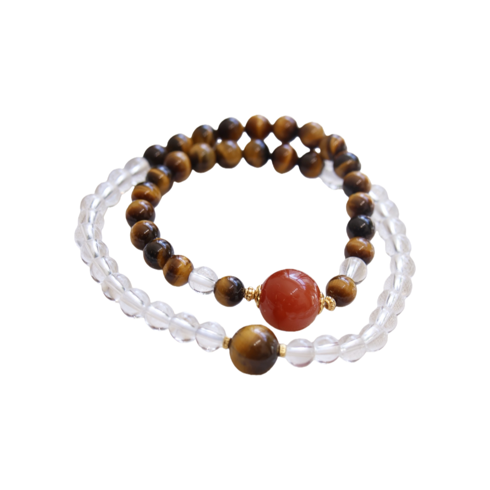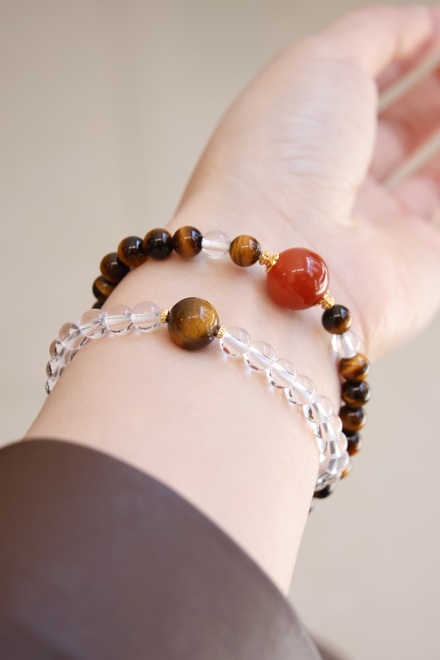 Crafted with the harmonious blend of tiger’s eye, carnelian, and clear quartz, “Aetherial Trinity Beads” weaves the essence of nature into wearable art. Featuring an elastic design for a comfortable fit around 16cm wrist circumference and beads approximately 6mm in size, this piece ensures both elegance and wearability. Tiger’s eye, with its earthy warmth, channels ancient courage; carnelian’s vibrant hue ignites the flame of passion and love within; while clear quartz, like crystalline dewdrops under dawn light, purifies the spirit and clarifies intentions. Each bead, a testament to nature’s artistry, invites you to embrace the primal connection between humanity and the earth. As part of Eosia Collection, it echoes the series’ spirit—where elegance meets the profound wisdom of nature. Wear these beads, let their energies guide you to awaken new vitality, kindle inner flames, and step into each day renewed, just as the dawn breaks through the night.
