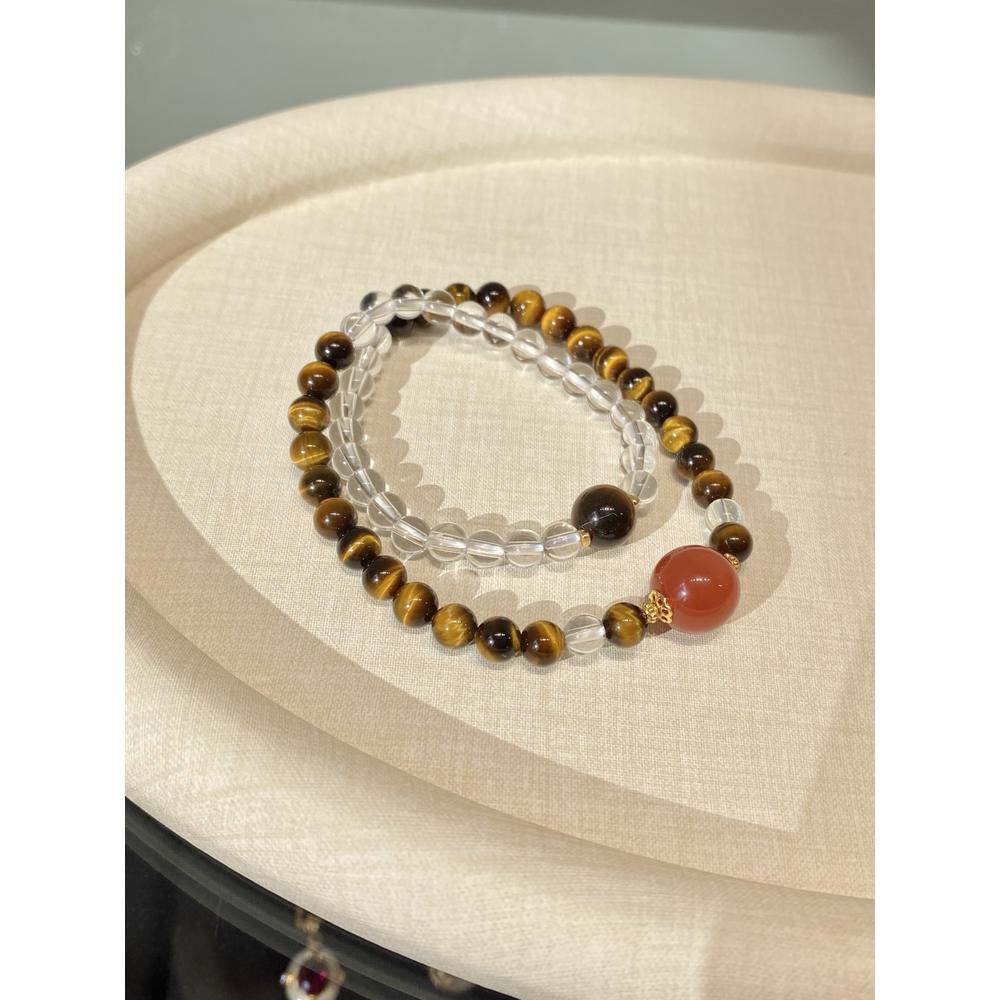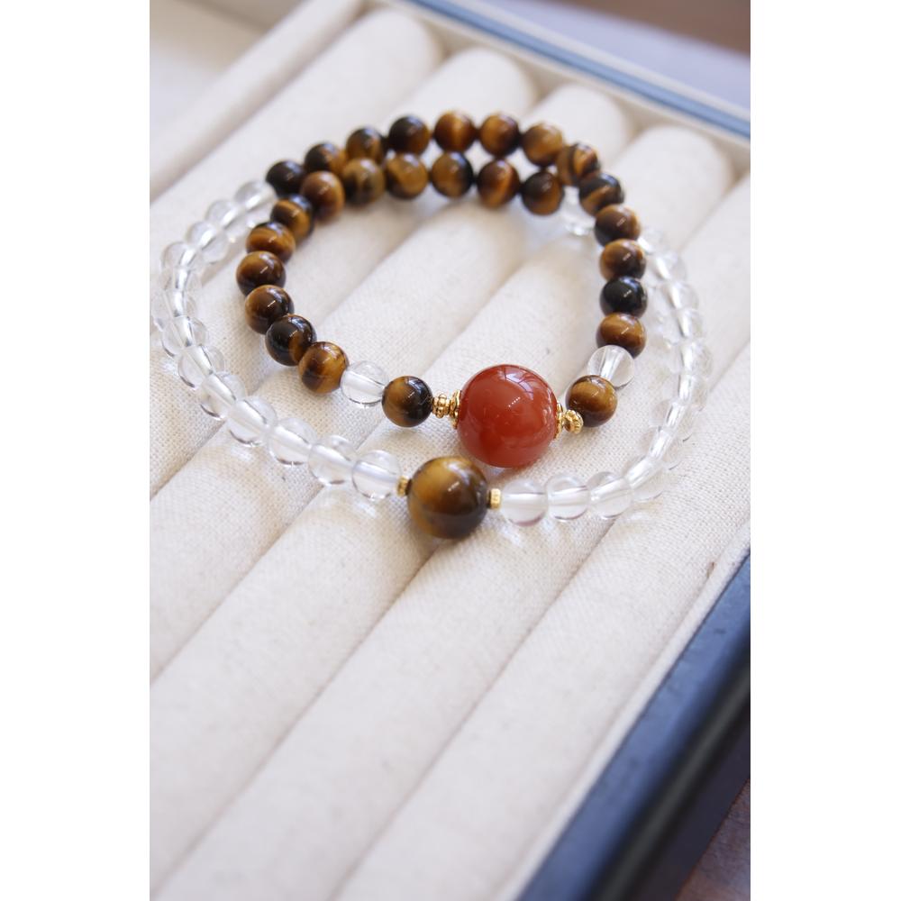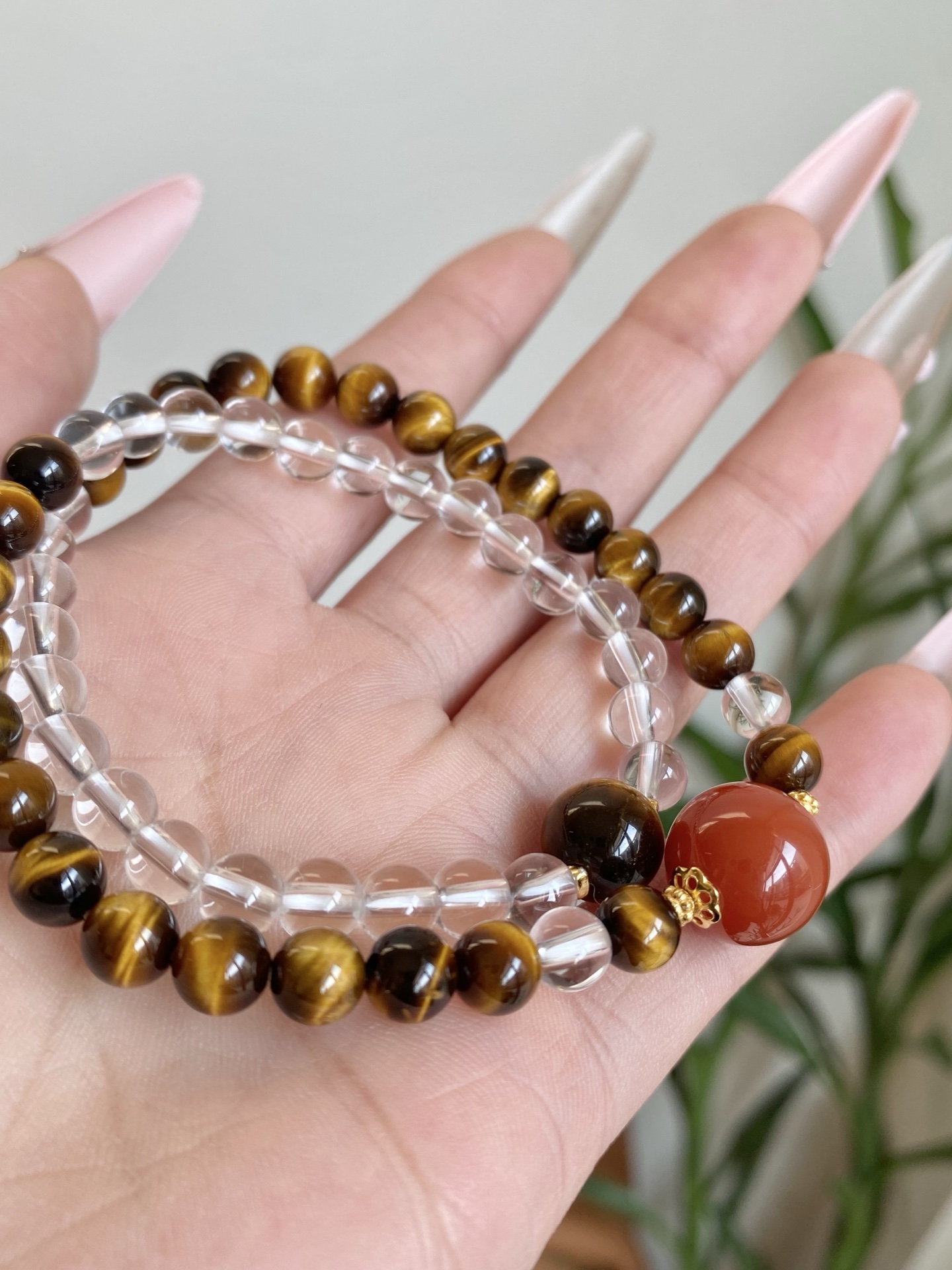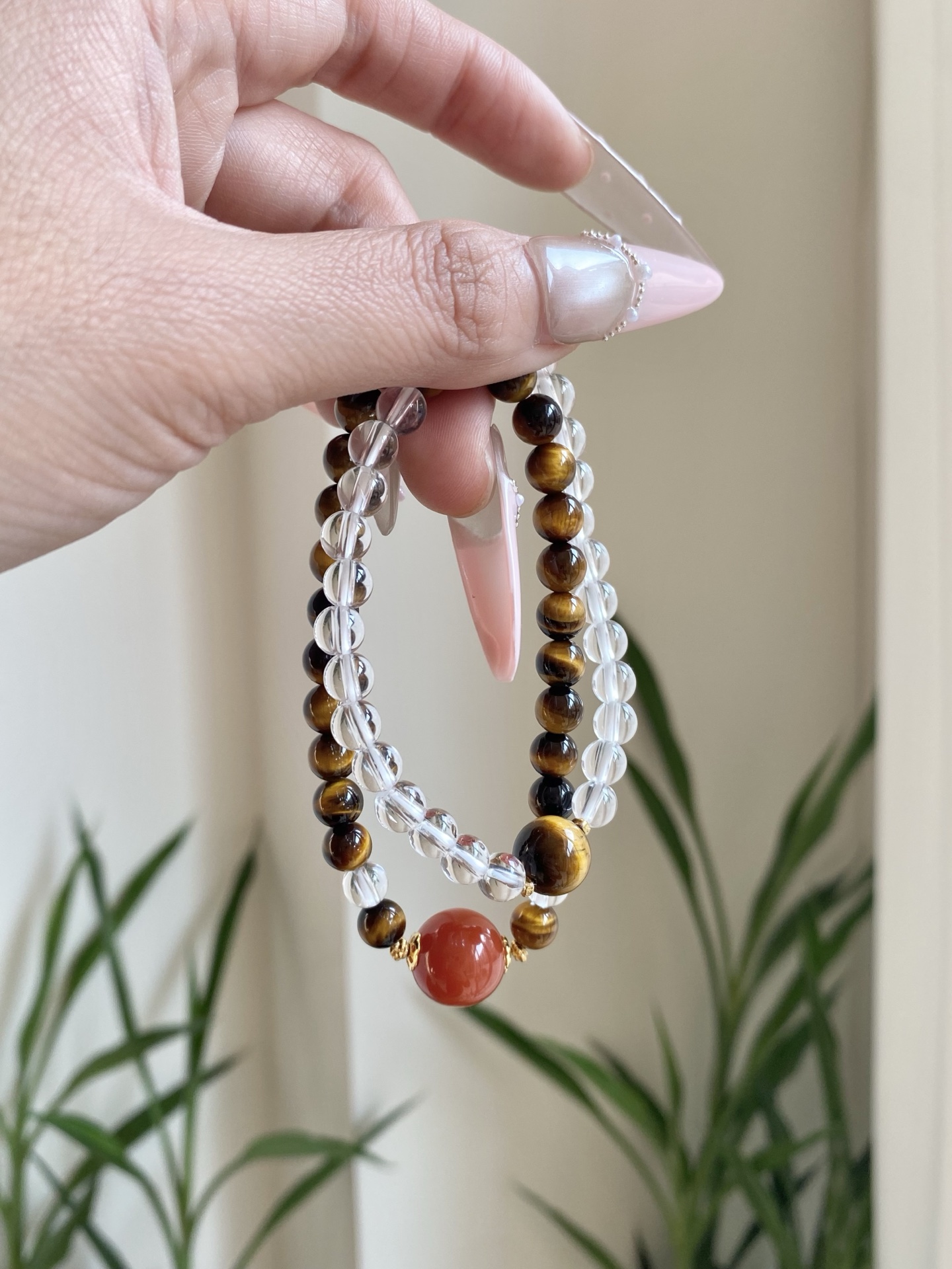 Crafted with the harmonious blend of tiger’s eye, carnelian, and clear quartz, “Aetherial Trinity Beads” weaves the essence of nature into wearable art. Featuring an elastic design for a comfortable fit around 16cm wrist circumference and beads approximately 6mm in size, this piece ensures both elegance and wearability. Tiger’s eye, with its earthy warmth, channels ancient courage; carnelian’s vibrant hue ignites the flame of passion and love within; while clear quartz, like crystalline dewdrops under dawn light, purifies the spirit and clarifies intentions. Each bead, a testament to nature’s artistry, invites you to embrace the primal connection between humanity and the earth. As part of Eosia Collection, it echoes the series’ spirit—where elegance meets the profound wisdom of nature. Wear these beads, let their energies guide you to awaken new vitality, kindle inner flames, and step into each day renewed, just as the dawn breaks through the night.
