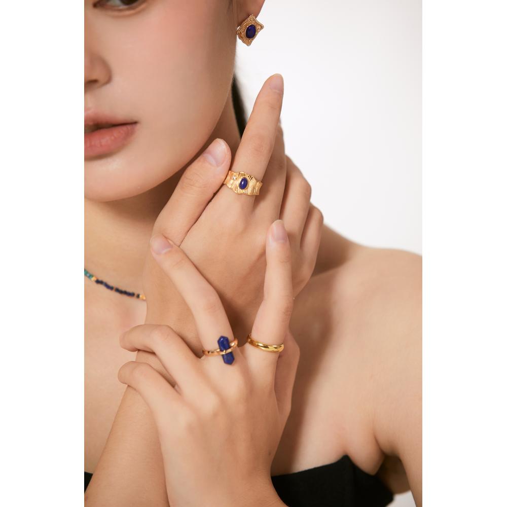 – **Lapis Lazuli “Wave Glow”**: Natural lapis lazuli stones carry deep blue hues with subtle, soft shimmer (like light dancing on water) — each stone’s unique natural texture makes your ring one-of-a-kind.