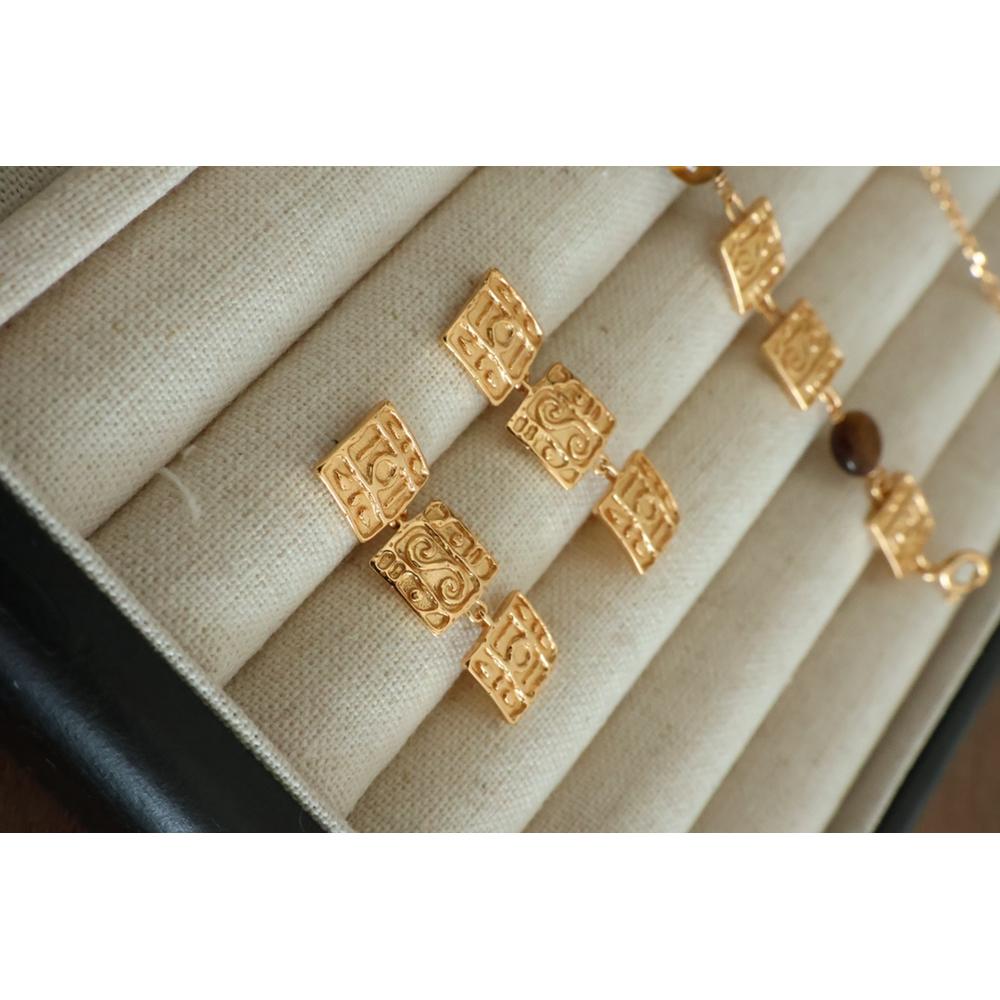 Material: Pure silver plated with genuine gold, along with tiger’s eye.
