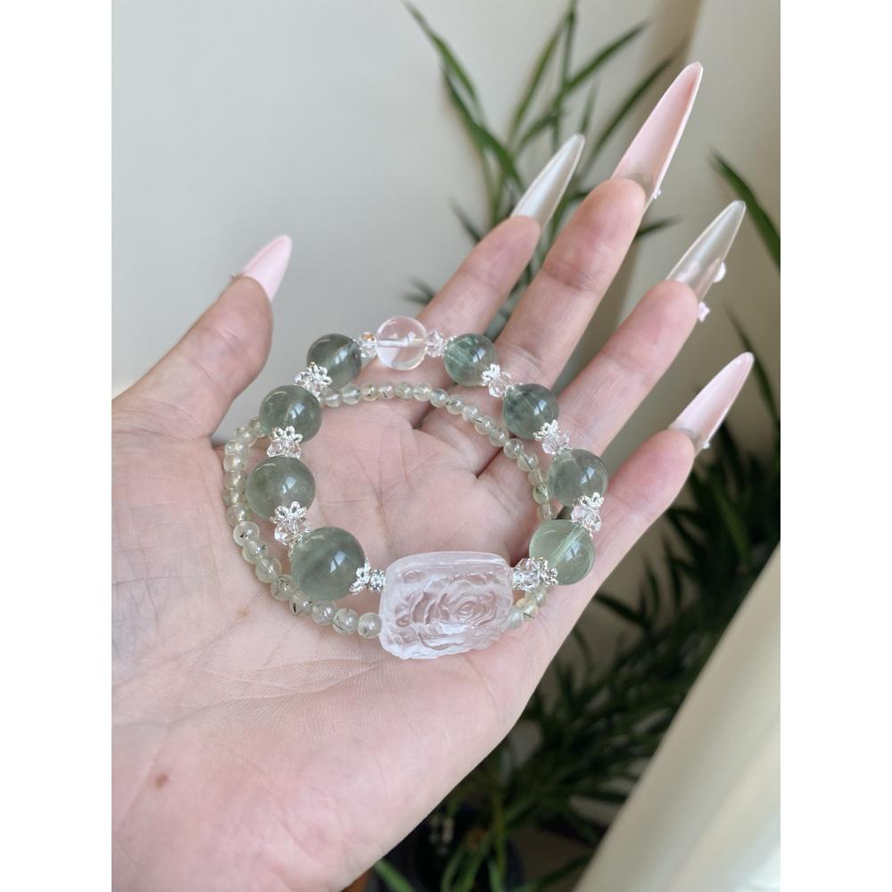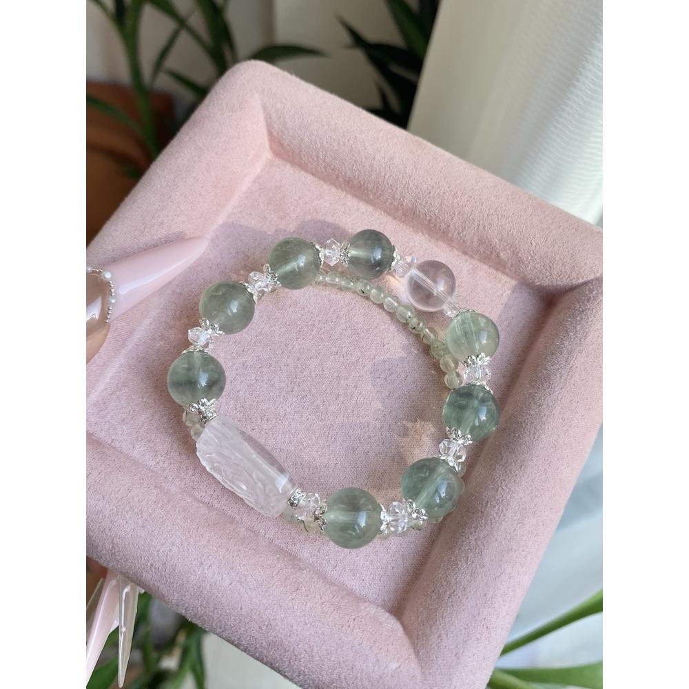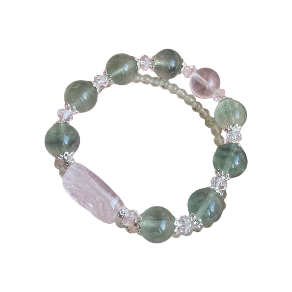 Ethereal Dawn Whisper is a masterpiece of Eosia Collection, where nature’s soulful whispers take tangible form. The deep – green gemstone beads, reminiscent of ancient woods bathed in dew, harmonize with the blush – pink carved bar bead—its subtle patterns evoking the tender unfurling of morning blossoms. Delicate crystal spacers add a touch of celestial shimmer, bridging the earthly and the ethereal.