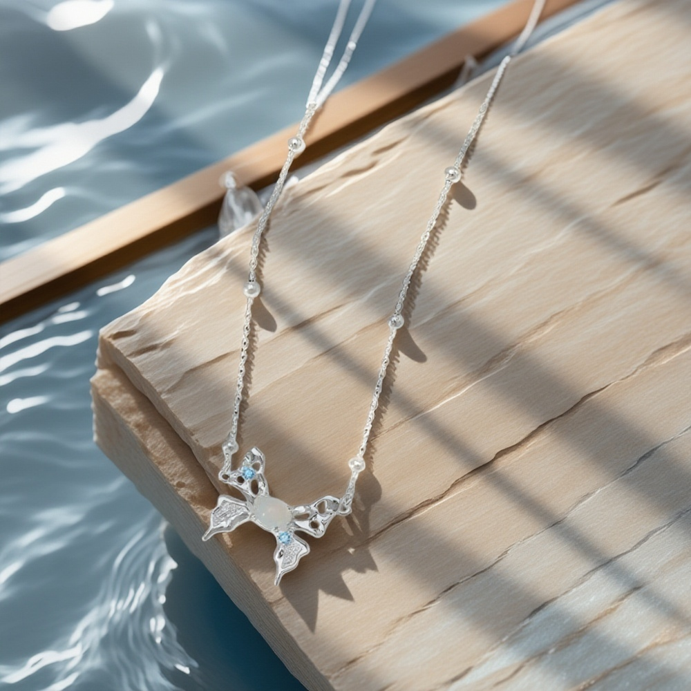 Be the first to review “Marine Serenity Chalcedony Butterfly Necklace”